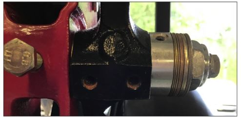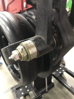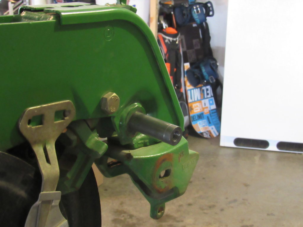 After the installation of a rigidly mounted pivot pin, mounting gauge wheels becomes a breeze, as there is no need to balance the gauge wheel on a knee while trying to thread a new bolt into the tapped hole.