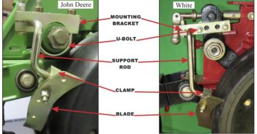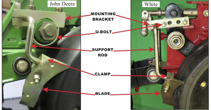 This scraper blade is available for each of the three main gauge wheel tire profiles. The blades are made from 3/16 heat treated steel and are mounted at about a 45 degree angle to the wheel. This allows the scraper to deflect mud outwards, away from the furrow and closing...